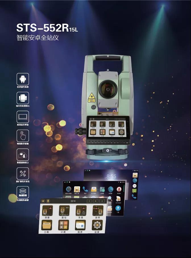 三鼎STS-552R15L智能安卓全站仪搭载 Android 6.0智能操作系统,平台开放、扩展性强,可根据不同作业需求进行软件功能升级与定制。