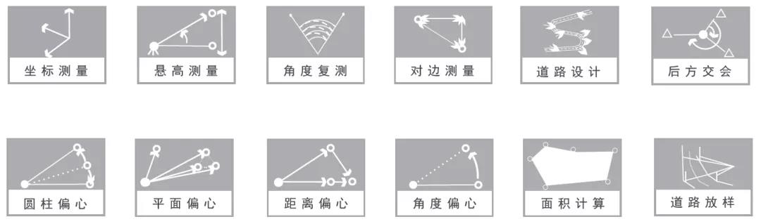 用于测图作业,在采集地物要素时边测边自动连图,并同步赋予要素编码,免除画草图的麻烦,实现测图无纸化作业。